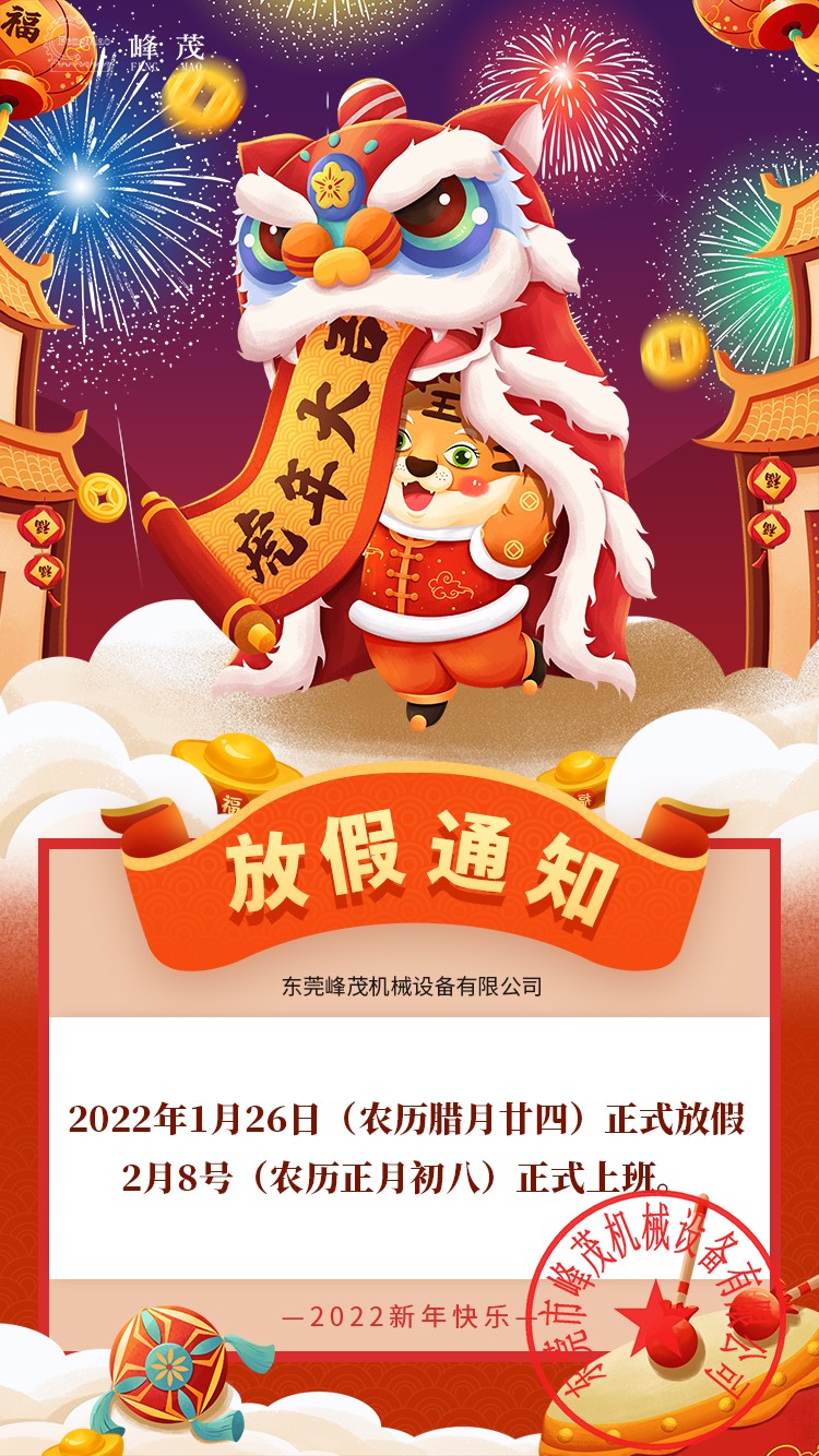 峰茂機(jī)械設(shè)備有限公司2022春節(jié)放假通知: